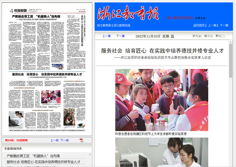 浙江教育报:服务社会 培育匠心 在实践中培养德技并修专业人才——浙江经贸职院食品检验检测技术专业群校地融合实践育人纪实